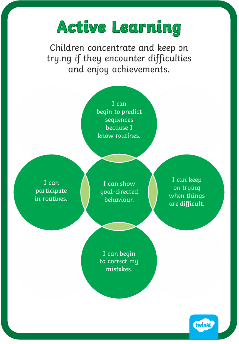 The 3 areas of effective learning are as follows. Our Early Years staff reflect on the different rates at which children are developing and adjust their practice appropriately to support this.