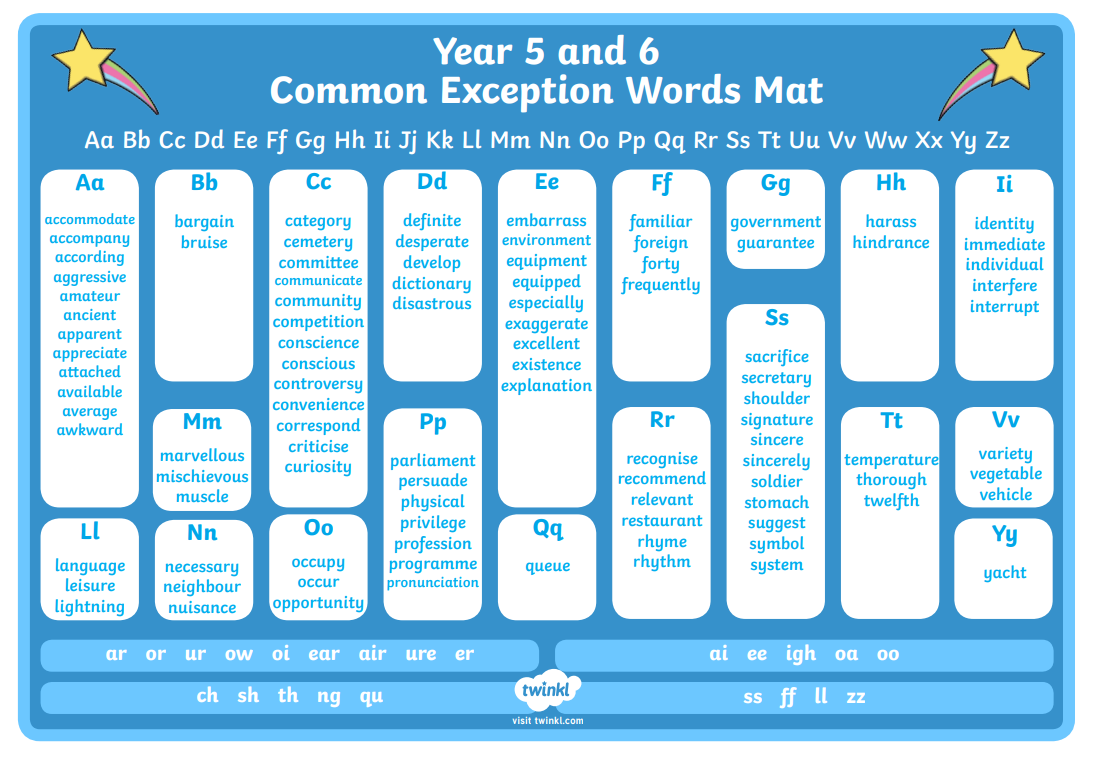 Common Exception Words for Years 5 & 6